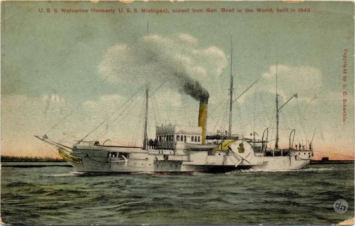 Одними из первых можно назвать английские деревянные канонерки на Великих Озёрах и в нижнем течении реки Святого Лаврентия, появившиеся в 1837 году во время восстаний в Канаде (да, были и такие!). В ответ американцы завели на Великих озёрах свою канонерскую лодку — первый американский военный корабль с железным корпусом USS «Мичиган». Это был колёсный пароход, вооружённый 18-фунтовой пушкой, спущенный на воду в 1843 году.