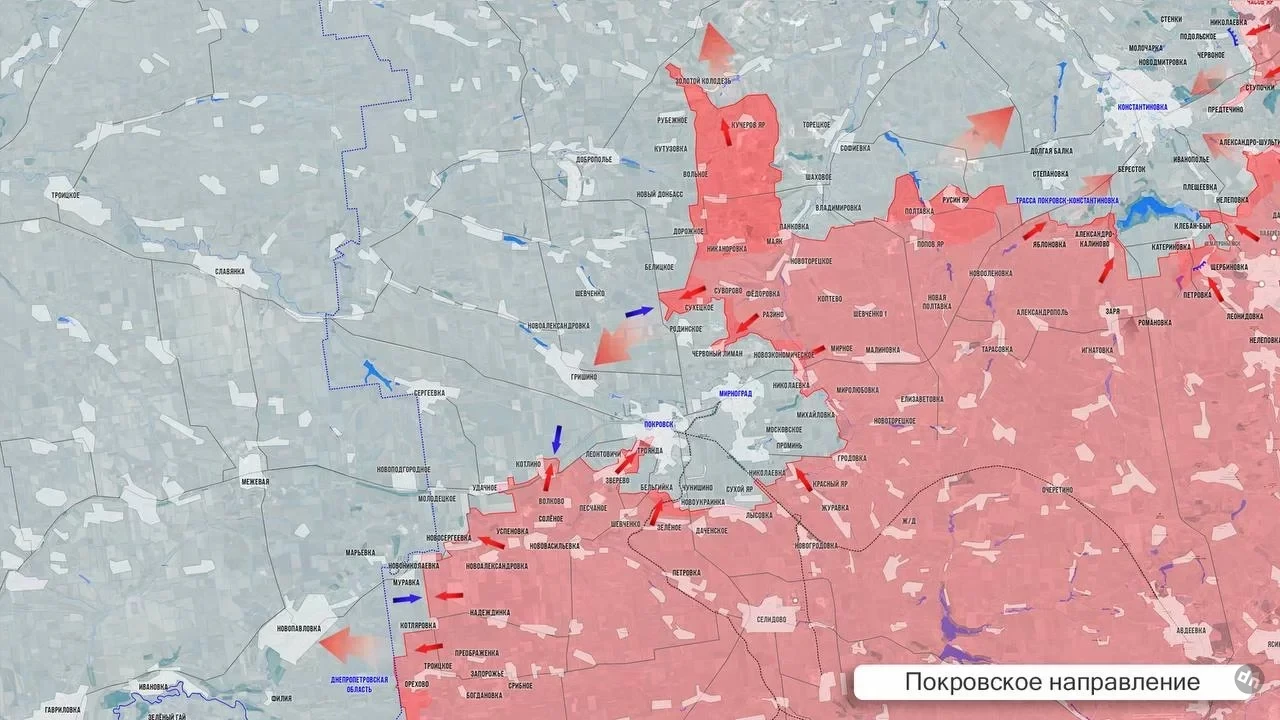 На Покровском направлении войска РФ наступают, постепенно охватывая Покровск и Мирноград. Фиксируется продвижение в Удачном. Продолжаются бои в районе Котлино, в Леонтовичах, в районе Чунишино. Противник упорно сопротивляется в Родинском, идёт ожесточённое сражение.