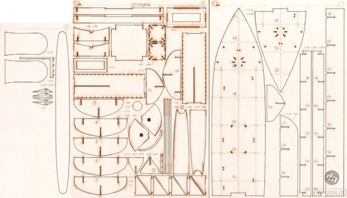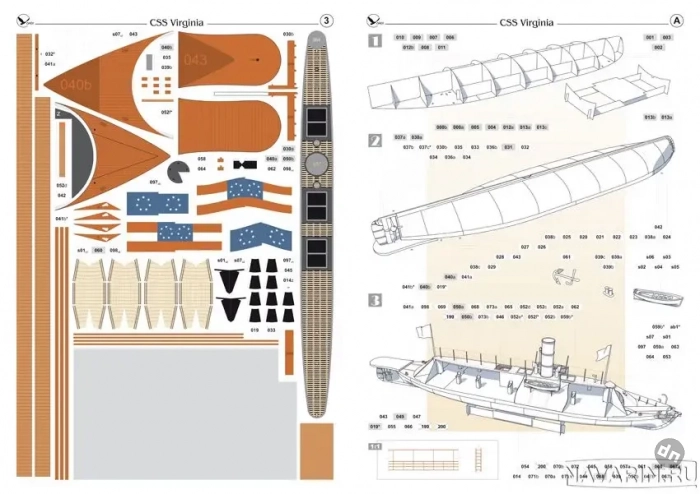 Отпечатанные детали и схема сборки броненосца «Вирджиния»