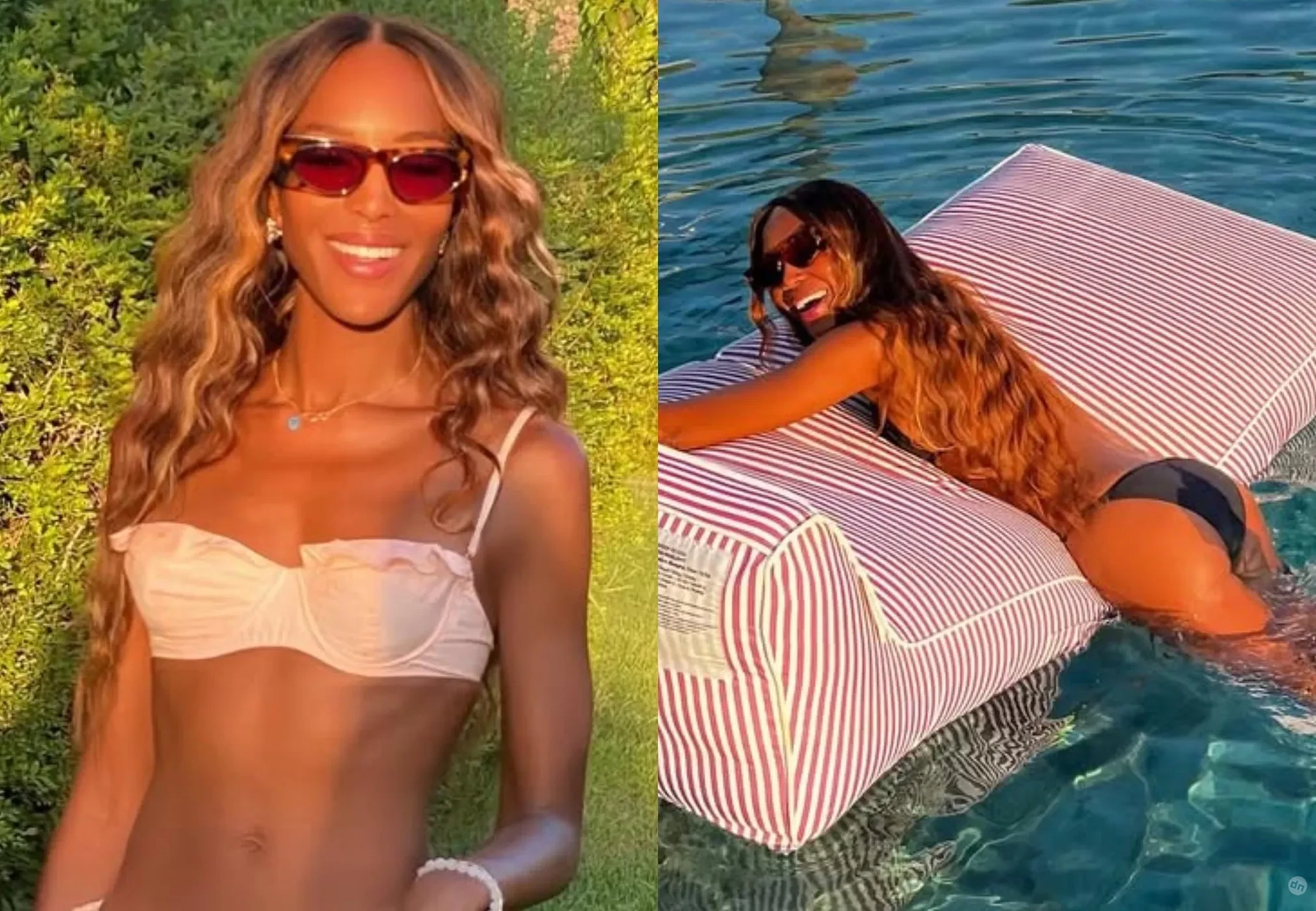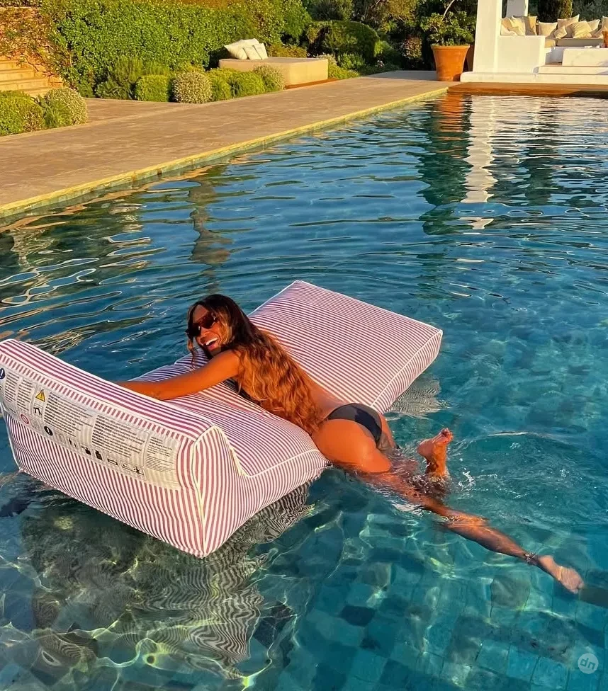 Наоми примерила несколько разных купальников, в которых плавала в бассейне и отдыхала на территории виллы.