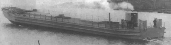 К счастью, в России был прекрасный образец для десантных кораблей — азовские паровые шаланды купца Елпидифора Парамонова. Машины находились в корме этих судов, а носовые две трети корпуса приходилось на трюм с парой аппарелей. Размещение машин в корме делало нос судна лёгким, в результате осадка кормой у шаланд этого типа была полтора — два метра, а носом — меньше метра. Подходя к берегу судно опускало аппарели, по одной из которых грузчики заносили мешки с зерном, а по другой — спускались на берег.