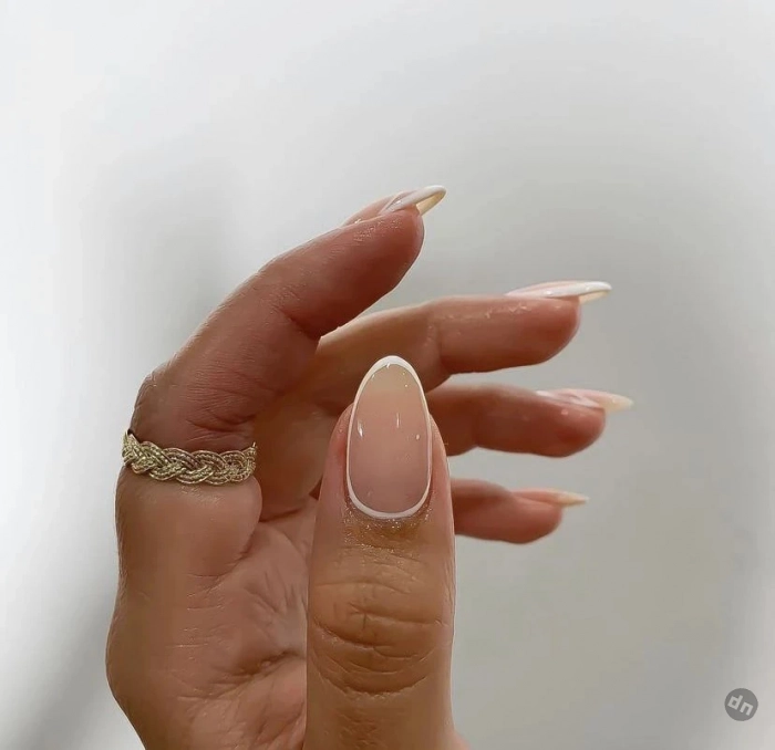 Геометрия остается в тренде. Тонкие линии по контуру ногтя создают эффект «рамки», визуально удлиняют пальцы и делают руки изящнее. Особенно эффектно такой дизайн смотрится с матовым топом и спокойной цветовой гаммой.