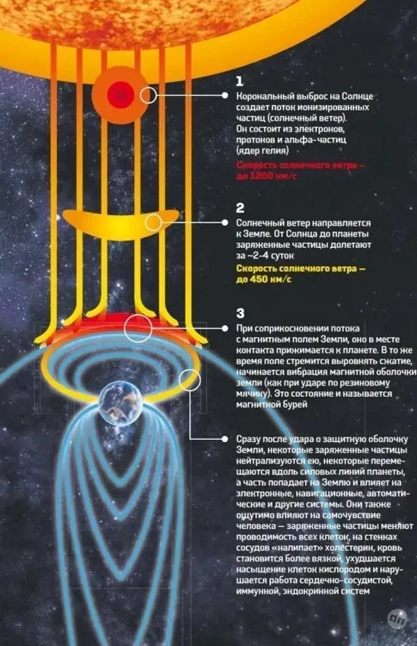 «Когда сгусток плазмы встречается с Землей, он не с земной поверхностью встречается, а с магнитным полем Земли», - объяснил он.