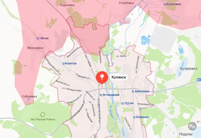В настоящее время от передовых позиций армии России на севере Купянска до центра города (здания местной администрации) остаётся около 1,6 км.