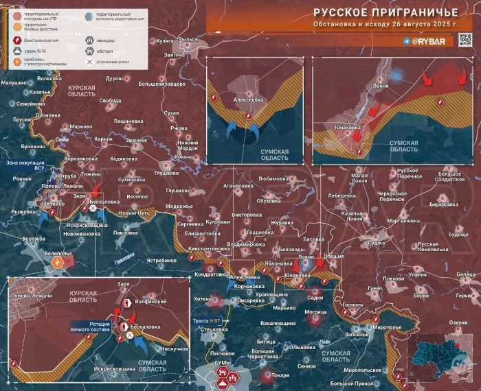 В Сумском приграничье противник контратаковал в районе Андреевки. В Юнаковке продолжается изматывающее сражение — у наших есть тактические успехи, но продвижение даётся очень тяжело.