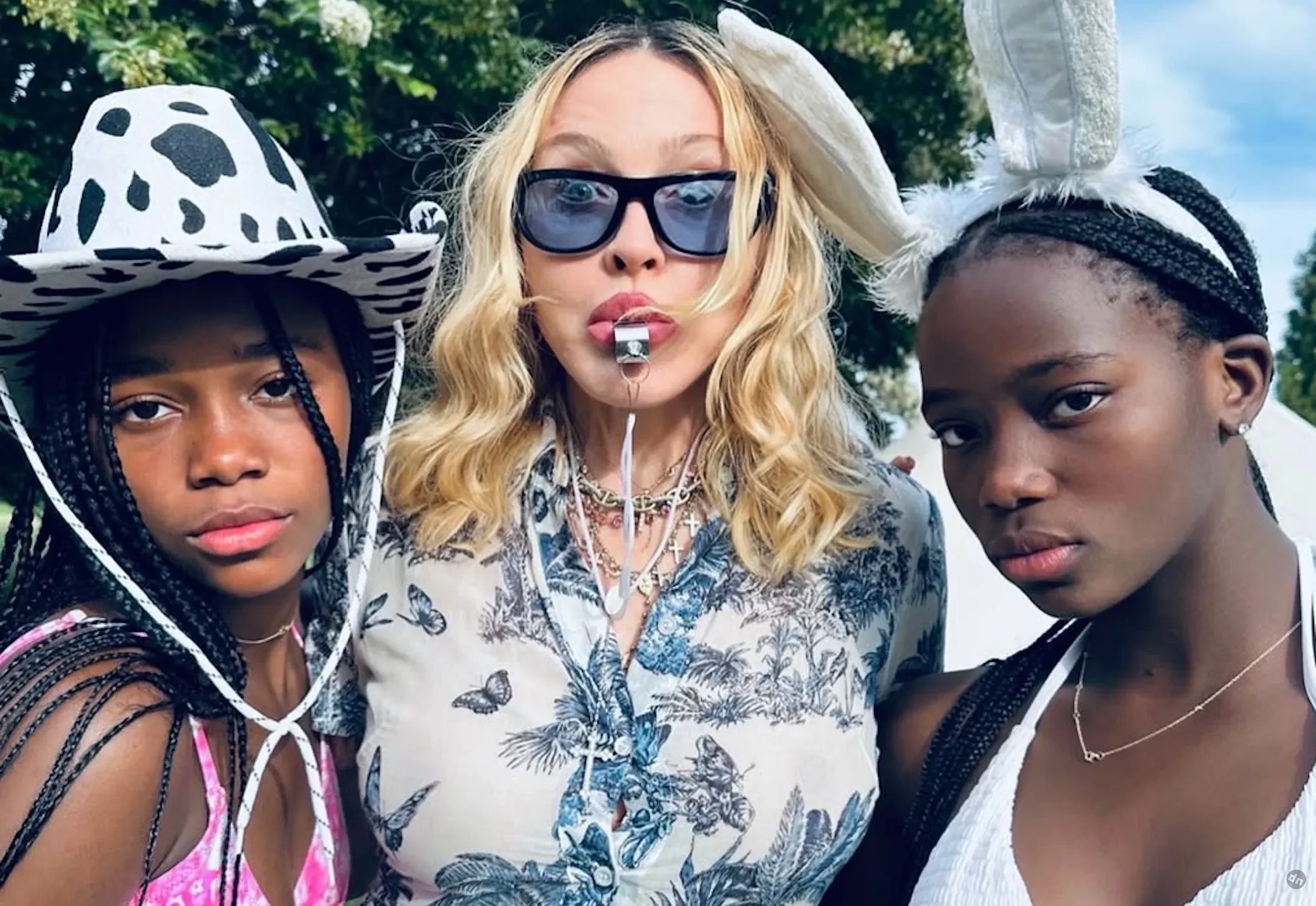 Вечеринка у бассейна и лабубу: Мадонна отметила 13-летие дочерей-близнецов с молодым бойфрендом и детьми