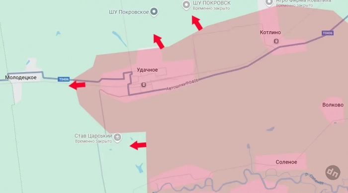 Таким образом, российские войска завершили взятие под контроль участка автомобильной дороги Котлино-Удачное к западу от Покровска. На данный момент ВС РФ подходят к селу Молодецкое. Это самое западное село ДНР на Покровском участке фронта. Сразу за Молодецким – Днепропетровская область.