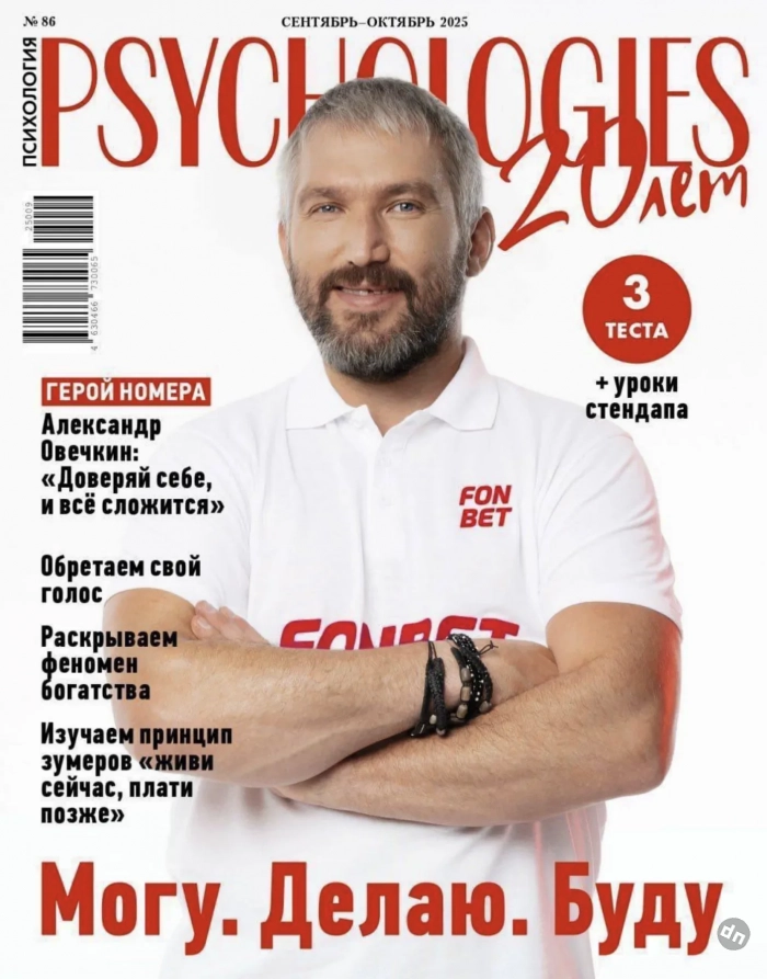 В "Мнении редакции" хоккеиста снял Алеко, со своим стайлингом и резким чёрно-белым портретом. "Чтиво" сделало ставку на улыбку и слово "рекорды". Psychologies показал спортсмена в белой футболке с логотипом букмекерской конторы Fonbet и мотивационным лозунгом "Могу. Делаю. Буду".