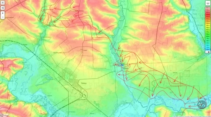 Продвижение зафиксировано и в районе Шандриголово, что открывает перспективу выхода к Лиману и перерезания сухопутных путей снабжения города. Переправы через Северский Донец регулярно уничтожаются российской авиацией и артиллерией.