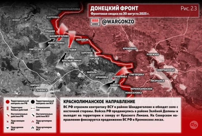 Карта боевых действий на Украине. Ситуация в зоне СВО на 30.08.2025