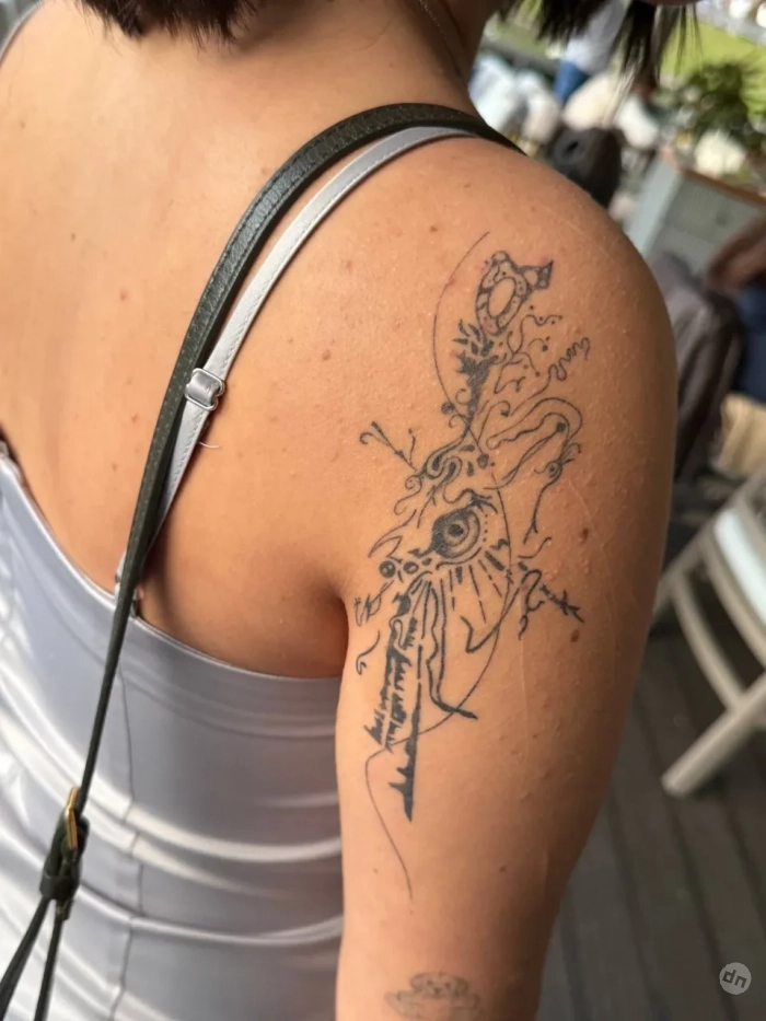 Участники шоу “Выживалити. Наследники”По случаю праздника Полина сделала новую татуировку по эскизу сына Децла. Абстрактный рисунок его авторства она набила на левом предплечье.