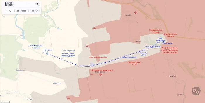 Так, по версии крупнейшего украинского военного паблика, украинские формирования не только якобы все еще удерживают населенный пункт Перестройка, но и ведут активные бои за Комар. При этом снабжение украинских «киборгов», по версии ресурса противника, якобы осуществляется по длинному коридору, ширина «горловины» которого не превышает 500 метров и путь через которую проходит в непосредственной близости от северных окраин Воскресенки. Более того, мифический путь якобы проходит через болота и реки под постоянным огневым воздействием ВС РФ.