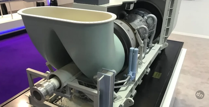 Судовая газовая турбина MT30 разработана на основе авиационного двигателя Rolls-Royce Trent 800, который создан для самолетов В-777 и пошел в производство в 1996 году. Ее уникальной особенностью является возможность работать на полной мощности в широком диапазоне температур входного воздуха: от -40 до +38 градусов. Она обладает такой мощностью, что один агрегат может разогнать корабль водоизмещением 6900 тонн как минимум до 28 узлов.