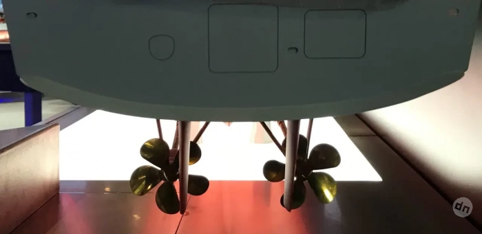 А для движения на крейсерской и более низких скоростях будут задействованы два гребных электродвигателя, питание которых обеспечивают до четырех дизель-генераторов, в то время как газовая турбина будет при этом отключена.
