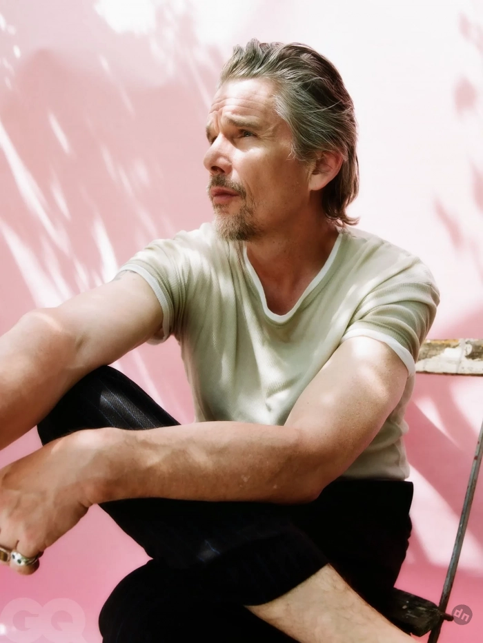 Итан Хоук снялся для нового номера GQ и рассказал о разводе с Умой Турман и их общих детях. Актёр позировал в объективе фотографа Брэндона Фримана. На снимках 54-летний Хоук предстал сразу в нескольких образах: в куртке и штанах бренда Miu Miu, винтажной майке, а также бежевом костюме Saint Laurent.