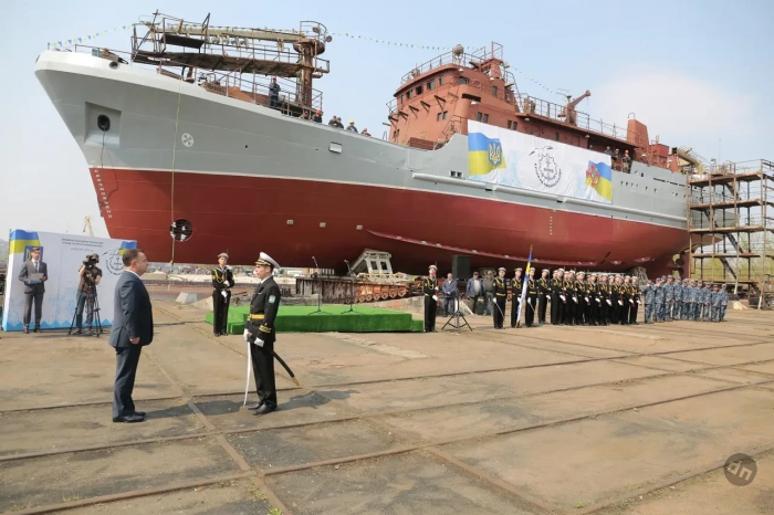Это событие преподносится украинскими властями и средствами массовой информации как очередная «перемога» («победа») отечественной военной промышленности и судостроения в частности. На самом деле, за годы независимости судостроительная отрасль потерпела полный крах. В наследство от Советского Союза Украине достались 11 современных судостроительных заводов с мощнейшими основными фондами и оборудованием международного уровня, которые обеспечивали строительство современных судов и кораблей всех типов: авианосцев, ракетных крейсеров, больших противолодочных кораблей, супертанкеров, лихтеровозов, в том числе одного с атомной силовой установкой, крупнотоннажных судов для рыбопромыслового флота и многих других. Итогом «хозяйствования» независимой Украины стало фактическое банкротство ведущих предприятий судостроения.