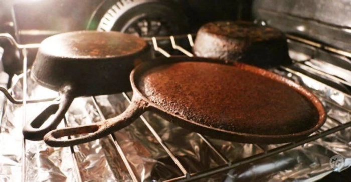 Чугунная посуда отличается особой прочностью, поэтому для нее подойдут более радикальные методы. Один из самых эффективных — термическая очистка.
