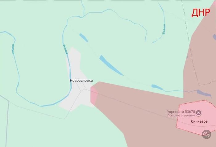 Российские войска продвинулись вдоль восточного притока реки Волчья в Днепропетровской области. В результате продвижения примерно на 2,5 км вглубь обороны противника Вооружённые силы России вошли и закрепились в очередном населённом пункте этого региона. Это село Новосёловка к западу от ранее освобождённого села Январское (Сичневое).