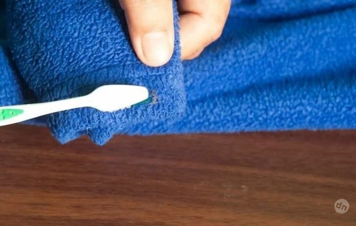 Зубная щетка с мягким ворсом отлично справляется с катышками на трикотажных или флисовых изделиях. Убедитесь, что щетка чистая и сухая, а затем мягко «расчешите» ткань в одном направлении, чтобы аккуратно убрать ворс.