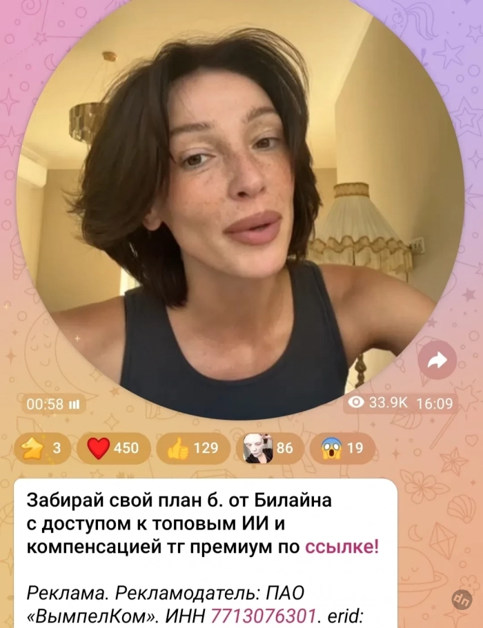 В своём новостном телеграм-канале 34-летняя блогерша опубликовала новое видео, в котором рассказала о новом тарифном плане "Билайн" с доступам к ChatGPT и DeepSeek. "Это технологичный помощник, созданный для поддержки молодого поколения, то бишь нас. Да, я — молодёжь", — заявляет Настя в ролике, который вышел с пометкой о рекламе.