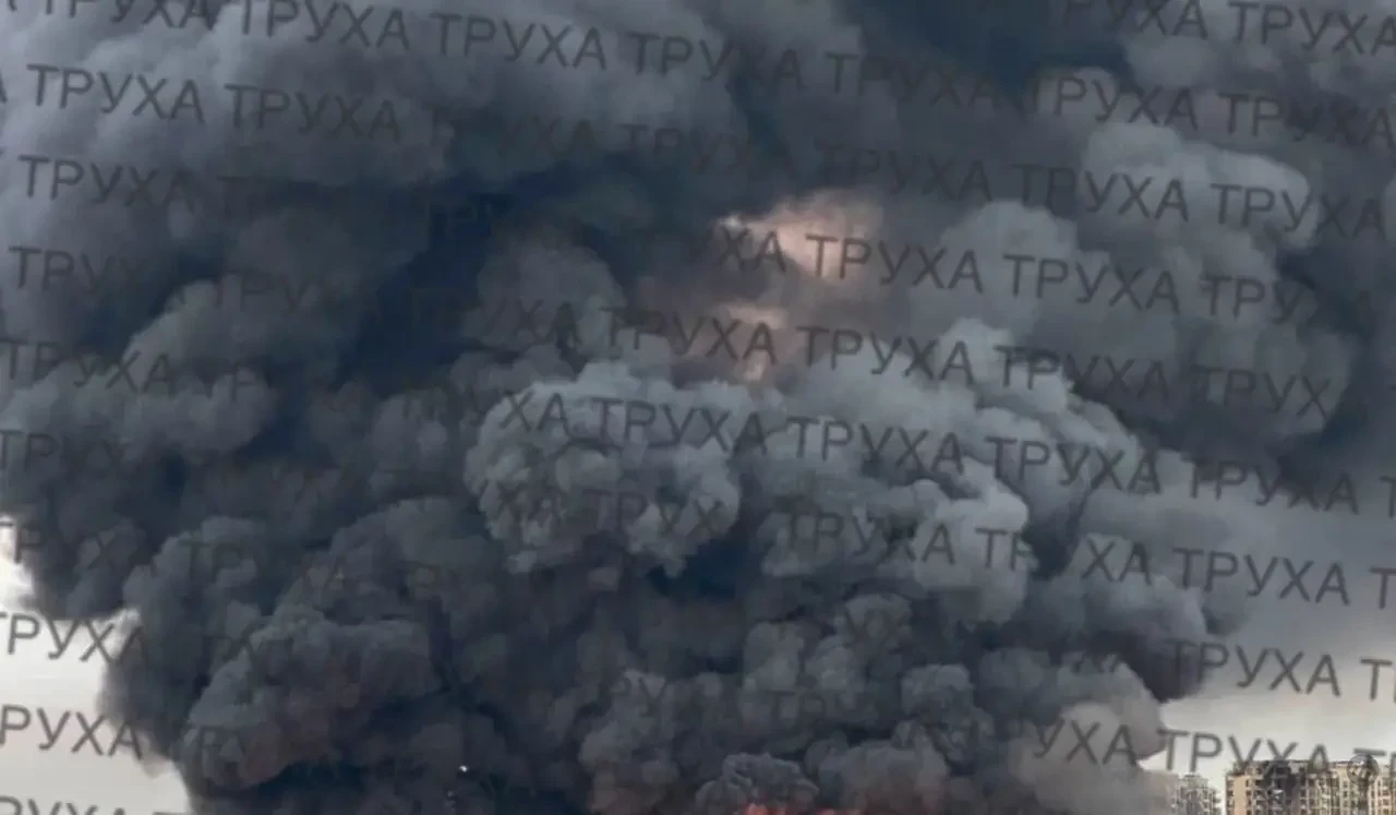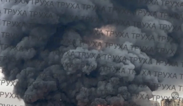В Киеве - поражение хранилища топлива. Поднимаются клубы густого чёрного дыма.