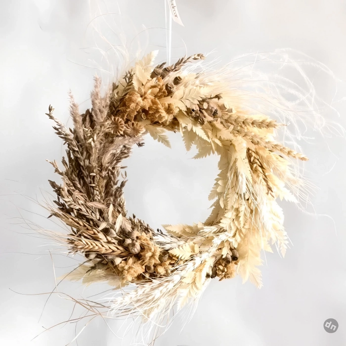 Хендмейд-декор снова в тренде. Венки из кленовых листьев, злаков и сухих трав легко сделать своими руками. Их можно повесить на дверь, прислонить к зеркалу или поставить в центр стола.