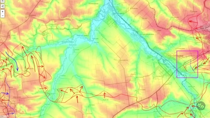 На Константиновском направлении российские войска продолжают атаки на южные окраины Константиновки, однако значительных прорывов пока не достигнуто. Противник оказывает упорное сопротивление, а по данным Подоляки, ВС РФ были вытеснены с восточных окраин города.