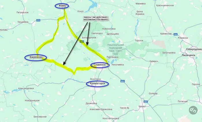 По данным военнослужащих ВСУ, российские дроны начали контролировать еще одну трассу, по которой идет снабжение группировки ВСУ в Славянско-Краматорской агломерации. Речь идет о дороге на Барвенково, которую в последнее время украинские военные использовали для переброски резервов, боеприпасов и т.д., т.е. в качестве логистического маршрута. Однако и она перестала быть безопасной, российские FPV-дроны уже сожгли несколько машин снабжения. До этого БПЛА появились на трассе Изюм — Славянск.