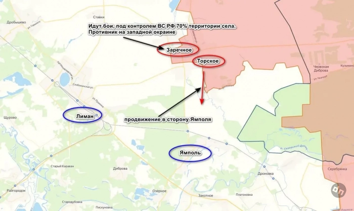 Кроме того, ВС РФ расширили зону контроля южнее Торского, атаковав по реке Жеребец в сторону Ямполя. Это позволило нашим не только продвинуться вперед, но и соединиться с подразделениями ВС РФ, действующими юго-западнее Червонной Дибровы.