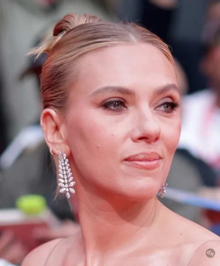 Актриса вышла на красную дорожку в бледно-розовом платье Valentino с декольте и открытой спиной, продемонстрировав свои татуировки. Свой образ Скарлетт дополнила причёской с пучком и серьгами с бриллиантами.