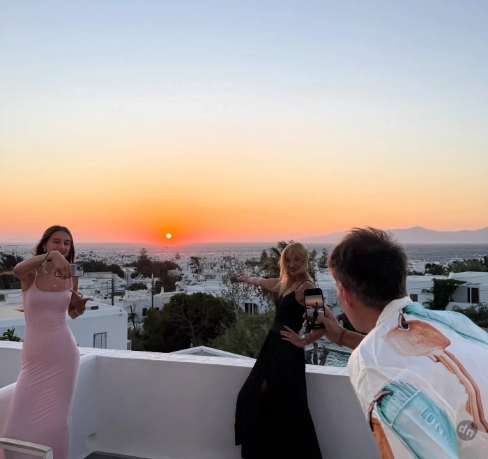 В подборке преобладают снимки с 13-летней Клавдией: в самолёте по пути на отдых, за столиком в ресторане и в купальнике на фоне моря. Также Орбакайте добавила отдельный кадр с Михаилом и несколько фото, на которых "держит" закатное солнце на ладони. "Летний фотоальбом — Греция", — подписала она публикацию.