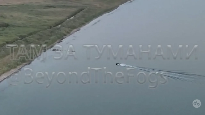 Испытания одного из отечественных БЭК в зоне проведения Спецоперации, май 2024 г. Катер движется к береговой цели. Фото Telegram / «Там за туманами»