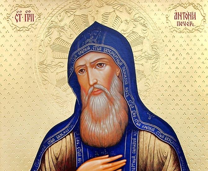 Преподобный Антоний Печерский появился на свет в конце X века вблизи Чернигова. С юных лет он испытывал сильное желание увидеть места, связанные с жизнью Иисуса Христа. После долгих странствий ему удалось посетить Палестину, а затем задержаться на Святой горе Афон. Здесь он принял постриг и провел несколько лет в монашеских уединениях.