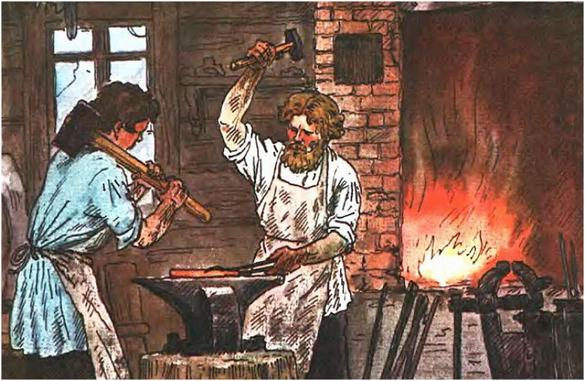 Кузнецы в древности были людьми необыкновенными, на которых возлагались особые полномочия. Считалось, что они способны управлять не только железом, но и огнем и водой. Эти умения связывались с магическими силами, и кузнецы часто считались хранителями знаний о том, как защититься от нечистой силы. Их труд был высоко ценим, и почитание их работы было неотъемлемой частью народной жизни, пишет сайт dosuga.net.