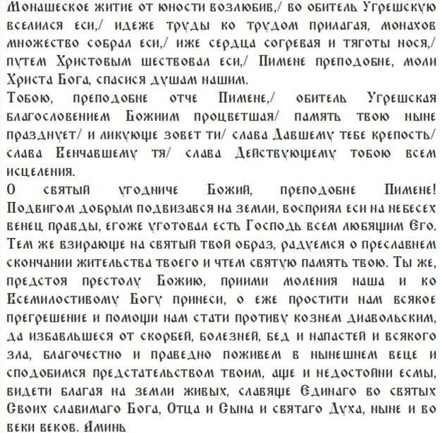 Преподобный Пимен Угрешский родился в Вологде в 1810 году. Его отец был церковным старостой, и с ранних лет Пимен часто бывал в храме.