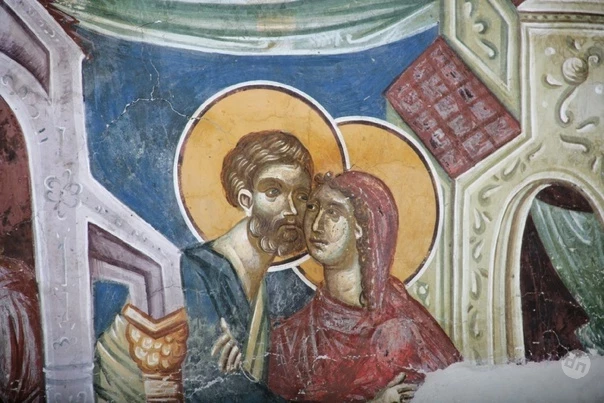 Аким и Анна, родители Девы Марии, долгое время не могли иметь детей. Супруги усердно молились о потомстве, но их просьбы оставались без ответа. Однажды Аким отправился в храм, чтобы принести жертву и попросить у Бога благословения на ребенка, но священник отказался принять его дар и прогнал его, поскольку в те времена отсутствие детей считалось признаком Божьего гнева.