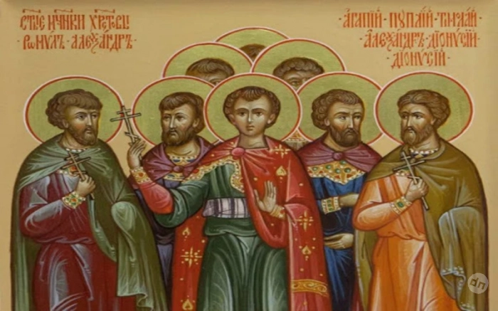 Святые мученики – два Дионисия, два Александра, Ромил, Тимолай и Пуплий – стали свидетелями страшной казни христиан, отказавшихся приносить жертвы языческим богам. Среди пострадавших был святой Агапий, которого вместе с Феклой бросили на растерзание диким зверям, а святого Тимофея приговорили к сожжению.