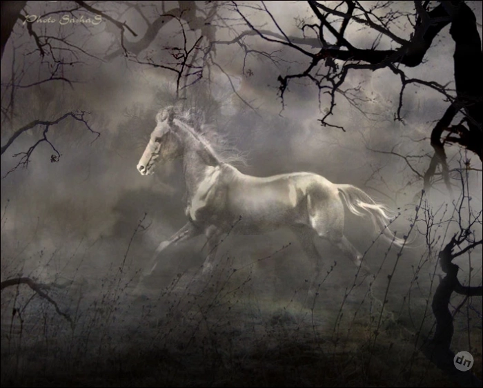 Лошадь и её всадник потеряли друг друга во время великого сражения. Когда русская армия терпела поражение, появился богатырь на белоснежной лошади. Он сокрушил врагов одним ударом, но сам погиб, поражённый озлобленным противником. Лошадь, лишившись хозяина, убежала на болота.