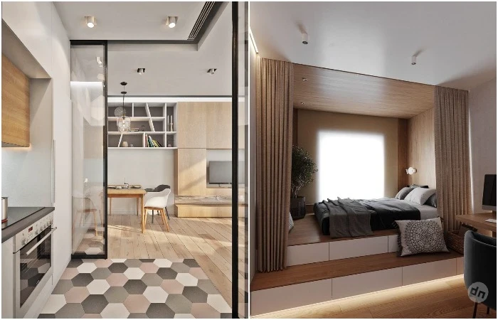 студия, зонировать, зонирование, интерьер, дизайн, прием, маленький