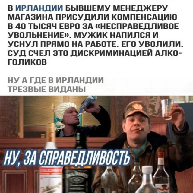 Алкоголь, само собой, зло. И злоупотреблять им точно не стоит. Однако очень многие люди любят скрасить свои выходные бутылочкой-двумя любимого спиртного напитка. Этому и посвящены забавные шутки и мемы из этой небольшой подборки.