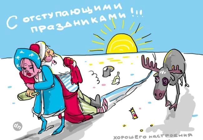 После празднования Нового года создаются мемы о «пост-новогодних реалиях». Это могут быть шутки о том, как тяжело возвращаться к обычному ритму жизни после праздников или о том, как долго елка будет стоять в гостиной после праздника. Пример мема: изображение человека, лежащего на диване среди новогодних украшений в конце января, с подписью: «А когда уже можно снять елку?»