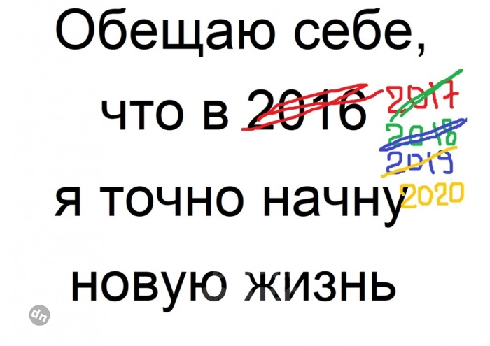 Ещё один тренд — с, которые никогда не выполняются. Например, картинки с обещанием начать новую жизнь с понедельника или с 1 января, которые, как правило, откладываются на следующий год.