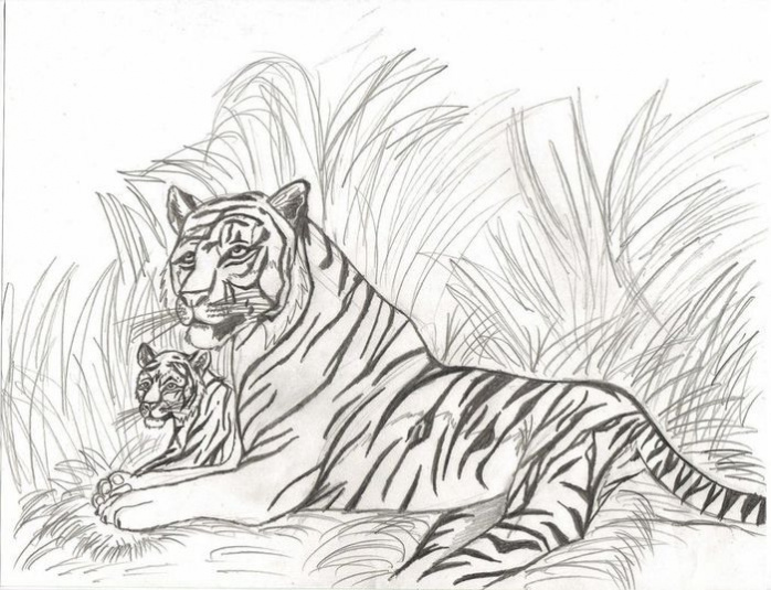 Смотрите красивые рисунки карандашом для срисовки тигра