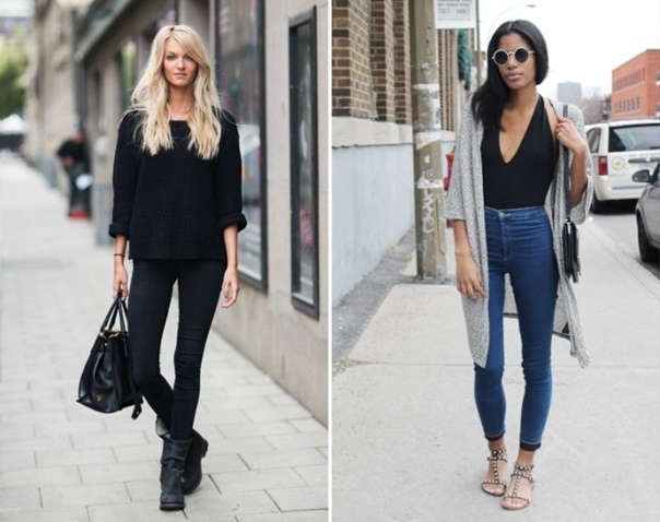 Скинни – это узкие брюки, которые вновь приобрели популярность среди модных девушек. Подобные брюки лучше всего сочетать с обувью на каблуке, такой как ботфорты, сапоги до колена с широким голенищем, мюли или сабо на небольшом каблуке. Избегайте сочетания с кроссовками или ботинками, чтобы избежать возвращения к модным тенденциям нулевых.