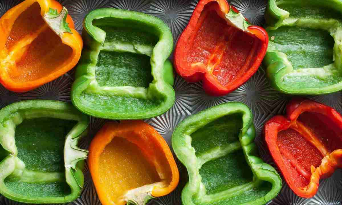 Очистка: Удалите плодоножки, сердцевину с семенами и внутренние белые перегородки. Внутреннюю часть перцев мыть не нужно.