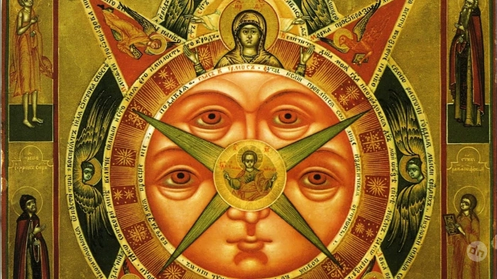 Икона «Всевидящее Око Божие» представляет собой сложное и символичное изображение, которое часто можно увидеть в старообрядческих храмах. Центральное место на иконе занимает символическое Око, окружённое разнообразными элементами, каждый из которых несёт особый духовный смысл. Эта икона помогает защититься от дурного глаза, укрепляет веру и удерживает от греховных поступков. Несмотря на свою неканоничность, она глубоко почитается за свою чудотворную силу.