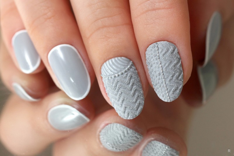 Если вы хотите добавить в свой маникюр изысканности, обратите внимание на матовое покрытие. Оно отлично смотрится на стандартных лаковых оттенках, таких как светло-серый или нежно-розовый. Матовые ногти выглядят строго, но в то же время очень стильно. Этот вариант маникюра станет отличным дополнением к любому офисному наряду, придавая вашему образу утончённость.