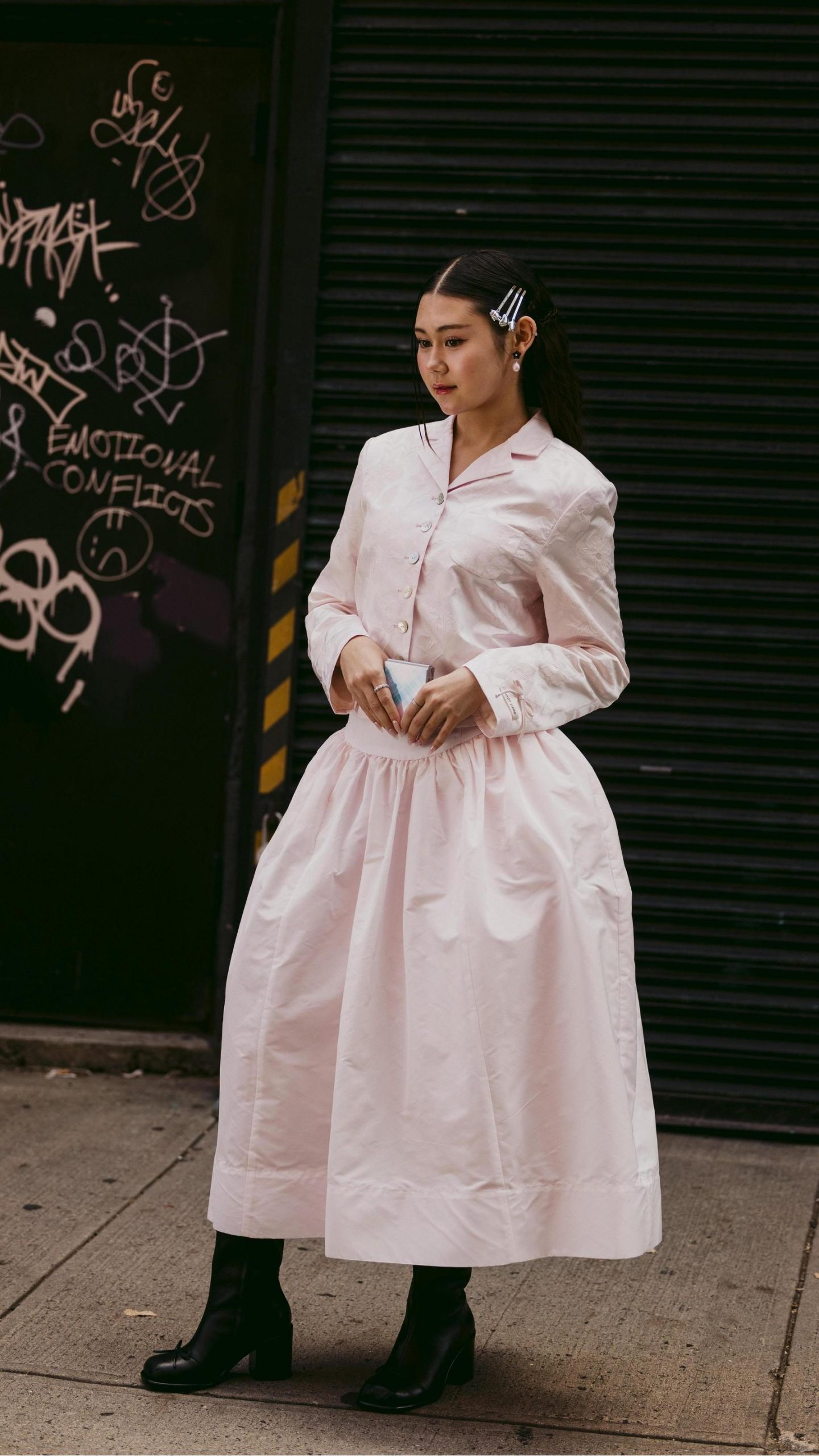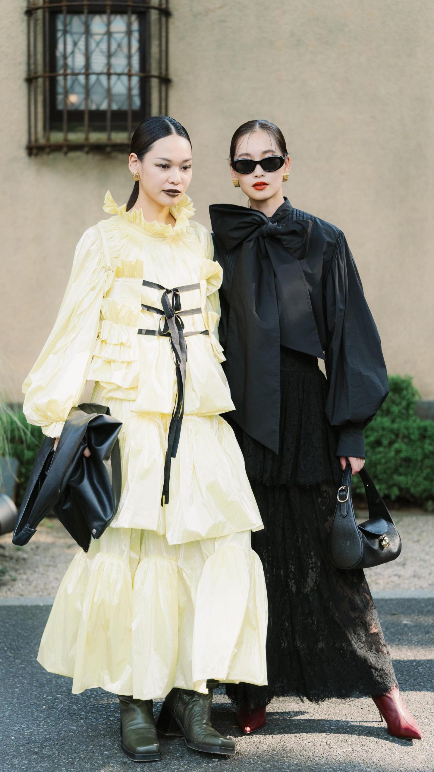 Ироничная многослойность — ключевой посыл коллекций сезона. Здесь во главу угла ставится свобода самовыражения и сочетание несочетаемого. Дизайнеры предлагают смелые и эклектичные образы, например, когда массивная футболка сочетается с романтичной рубашкой, поверх которой надето худи и структурированный жакет. Это противовес строгому нормкору и стандартным правилам.
