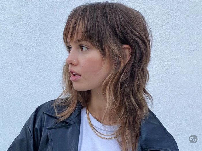 Шегги с удлиненной челкой — это тренд, который вернулся из 70-х. Эта стрижка подходит девушкам с овальным и круглым лицом, а также прекрасно смотрится на тонких волосах. Укладка шегги не требует особых усилий: просто нанеси текстурирующий спрей, высуши волосы вниз головой и слегка взъерошь их. Челка может быть уложена как прямой, так и асимметричной.