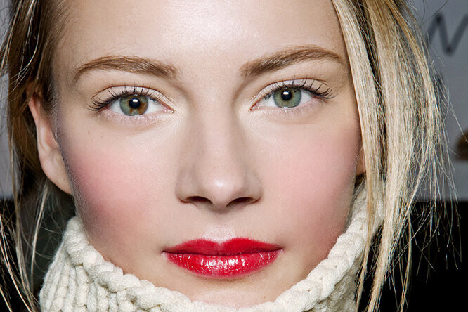 - Если у вас от природы появляется румянец на морозе, лишь слегка подчеркните его.